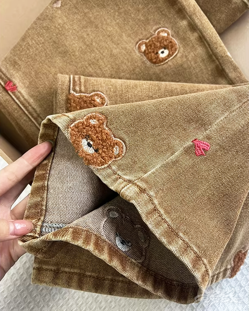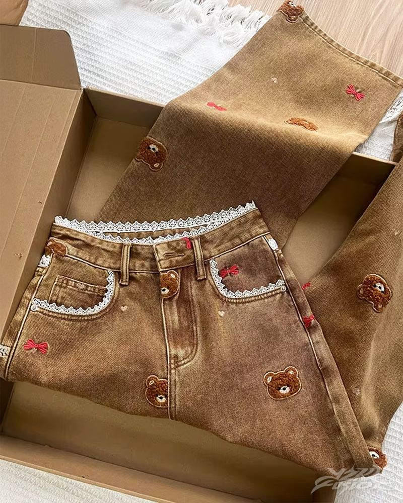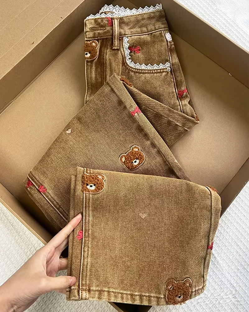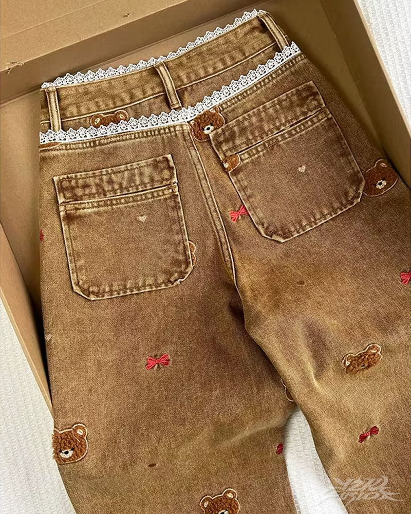 Jean Y2K ours brodé